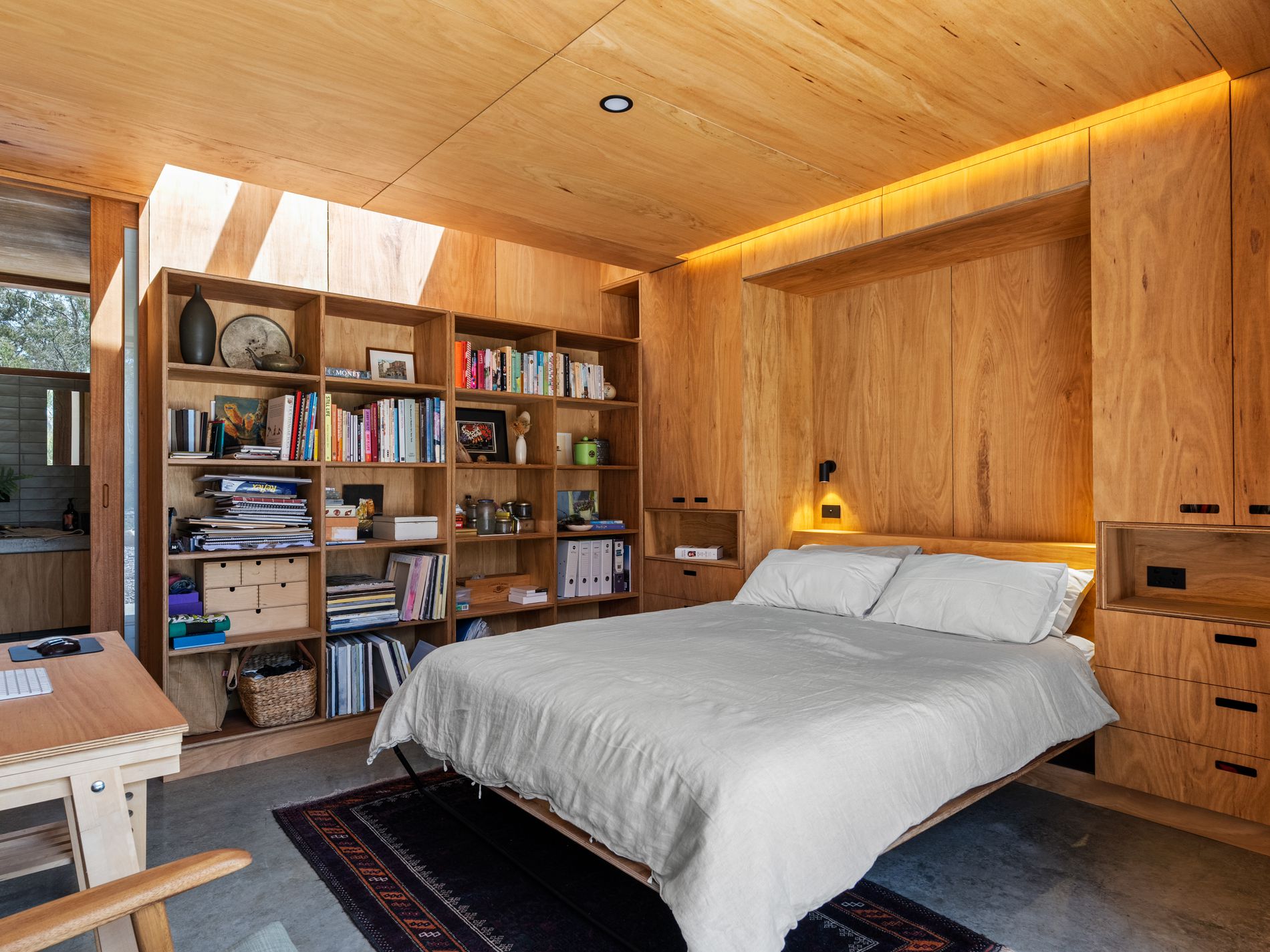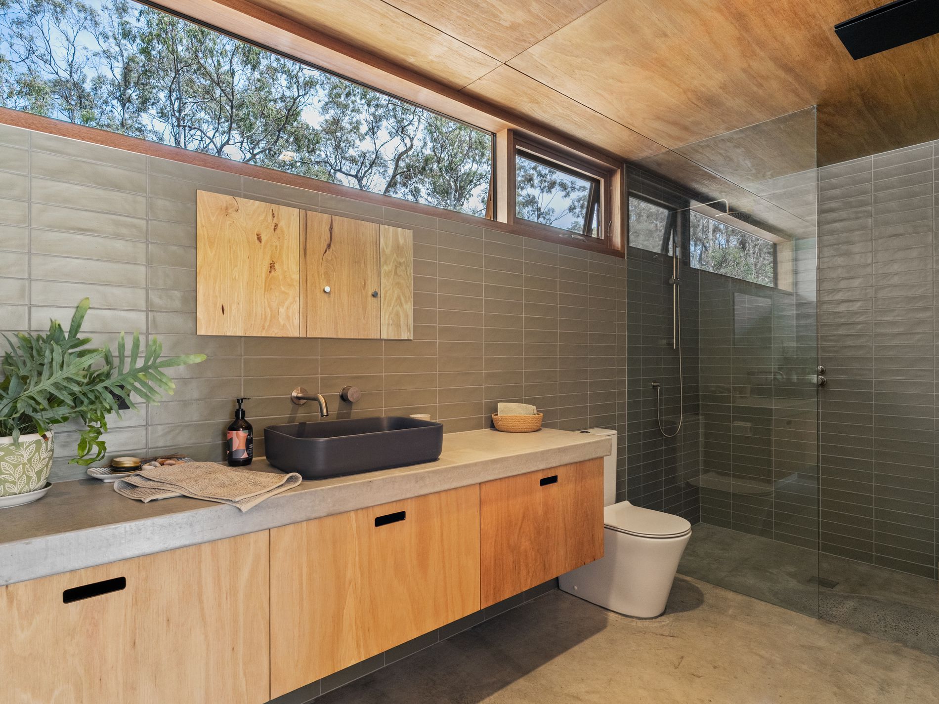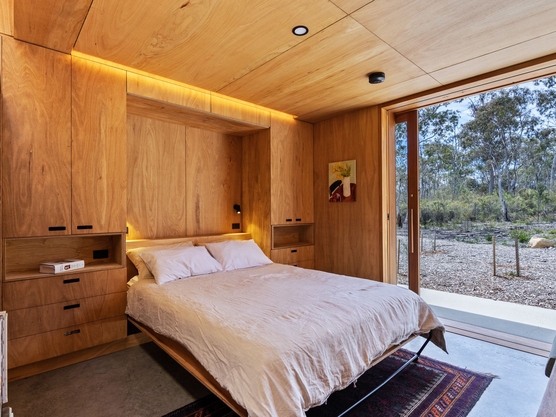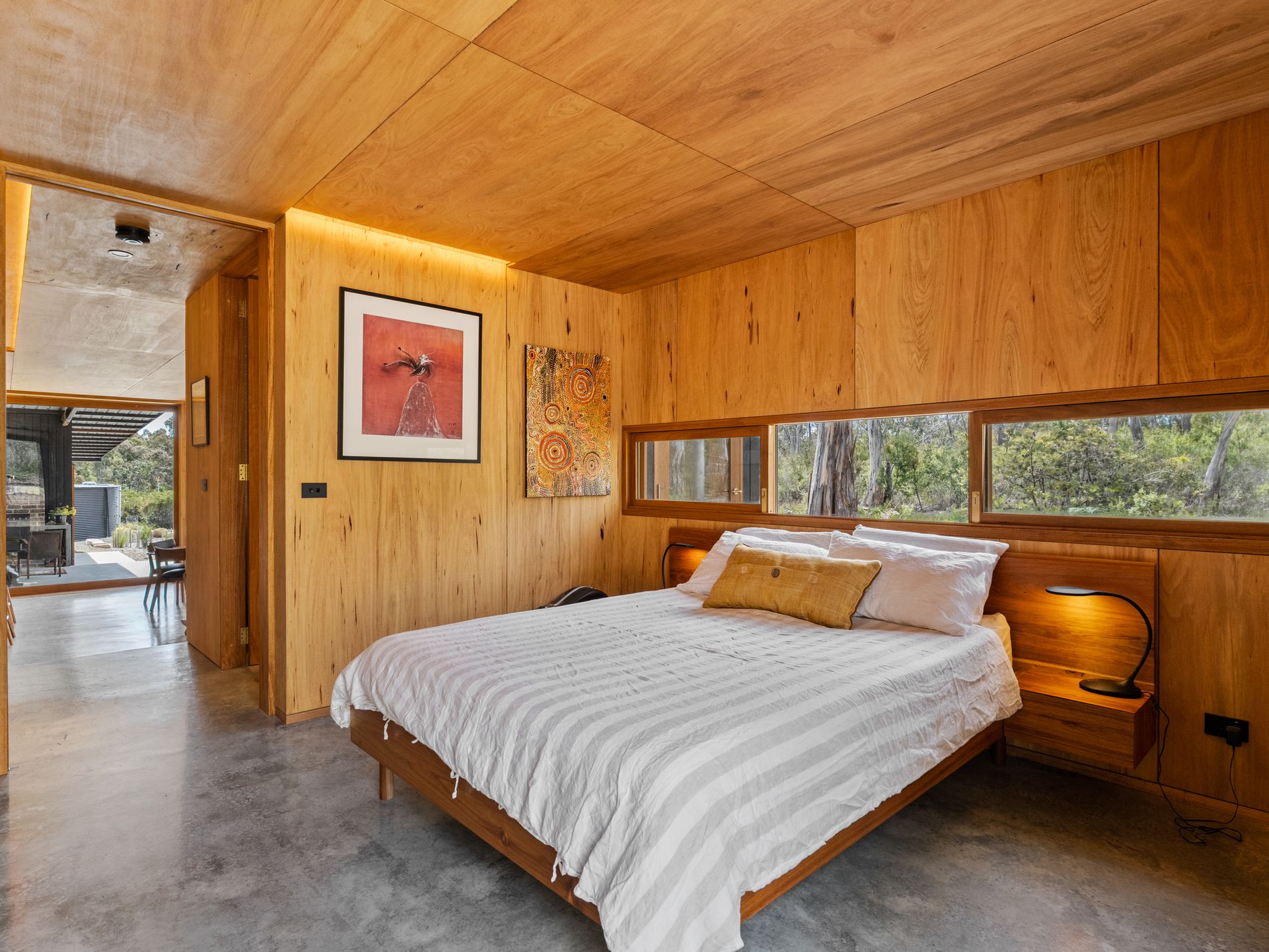 Accommodation is equally impressive. The house is on two levels with three steps up to the main bedroom/ensuite area (giving separation and a sense of space - leading up to a large sliding glass door with views to the bush and sky beyond).The main bedroom is a peaceful retreat complete with a stylish ensuite and walk-in robe, while the second bedroom also enjoys its own ensuite and offers flexibility as an additional living area or home office. A large 6 x 5.5 metres versatile space lends itself to being a substantial workshop, studio or creative space.