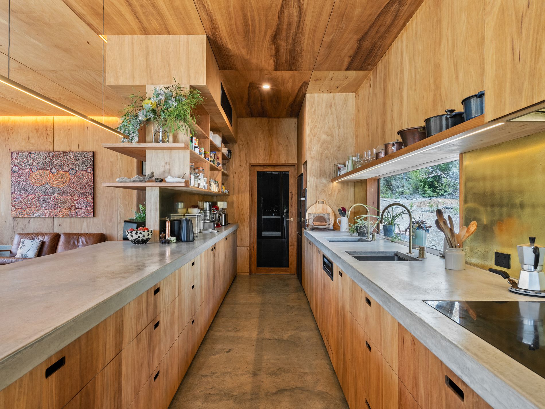 Exquisite craftsmanship is evident throughout, with stunning custom joinery featuring hardwood ply, Blackbutt door/window frames and Ironbark cladding, complemented by a series of cleverly integrated and delightful hidden features. At the heart of the home is a chef’s kitchen equipped with quality European appliances and a dedicated wine cellar, ideal for entertaining or everyday indulgence.